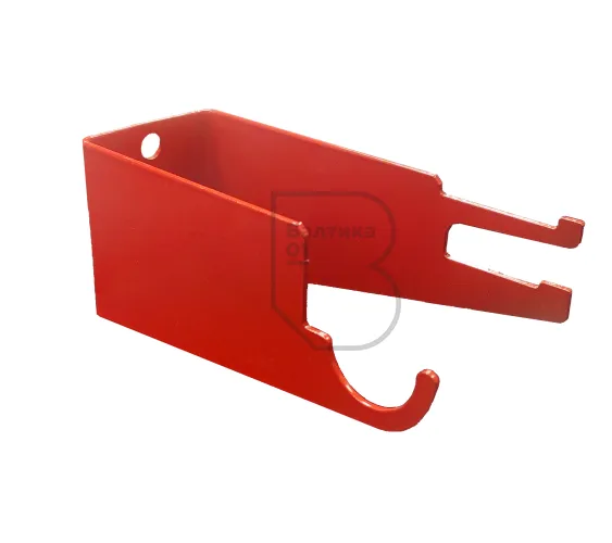 Кронштейн имеет специальные выемки: круглая выемка – под шланг, прямоугольная – под рычаг запорно-пускового устройства. Имеет влаго-морозостойкое порошковое покрытие. Цвет – красный. Преимущества – небольшие габаритные размеры, легкий вес, низкая цена