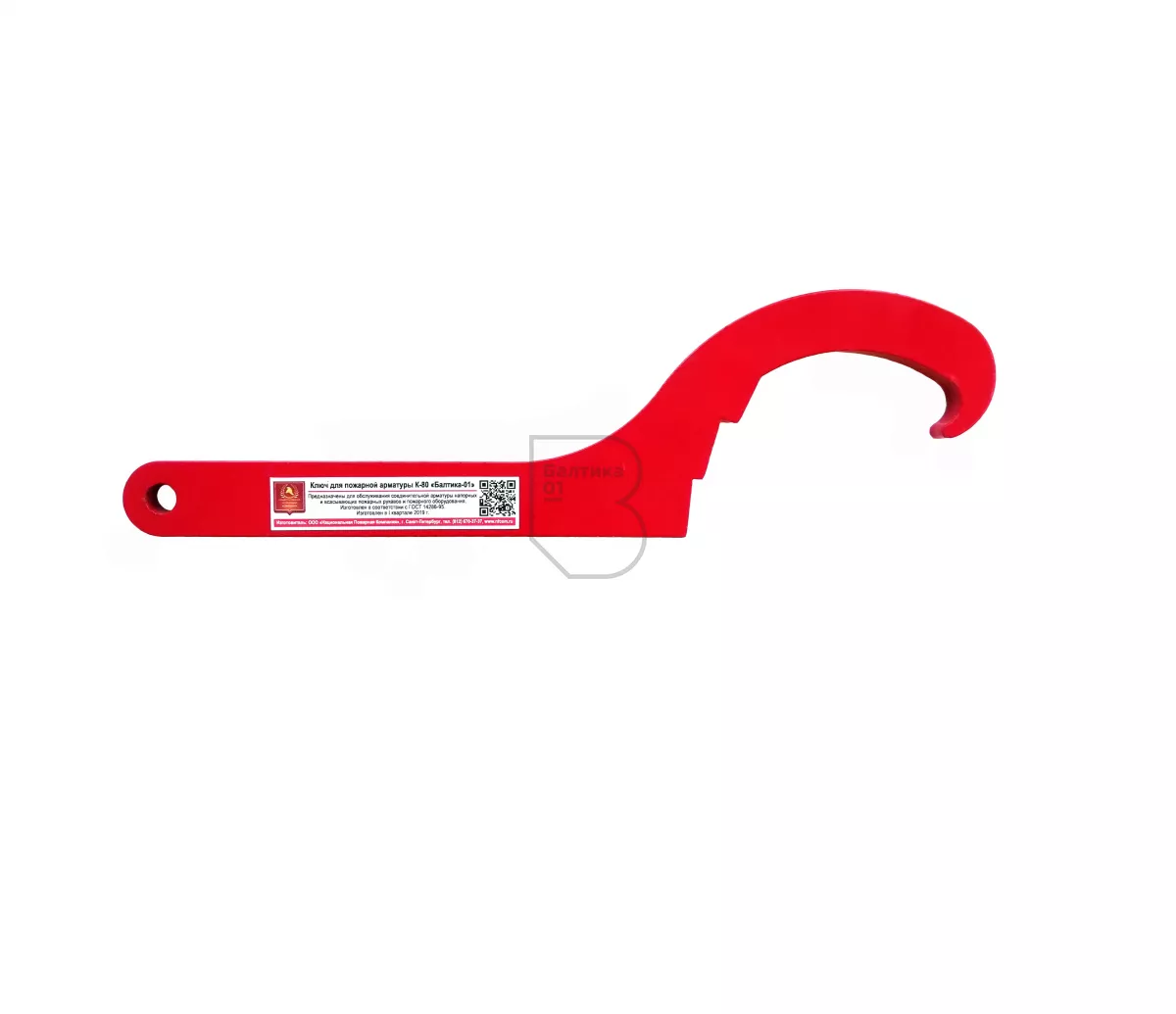 Ключ для пожарной арматуры К-80 «БАЛТИКА-01» изготовлен из высококачественной конструкционной стали марки СТ45 (ГОСТ 1050-88). Используется для смыкания соединительных головок до диаметра 80 мм. Имеет антикоррозийное порошковое покрытие. Цвет – красный. В отличии от ключей К-80, изготовленных из ковкого чугуна, Ключ К-80 «БАЛТИКА-01» производится с использованием установки лазерной резки металла, имеет точную геометрию «зубцов» и повышенную износостойкость.