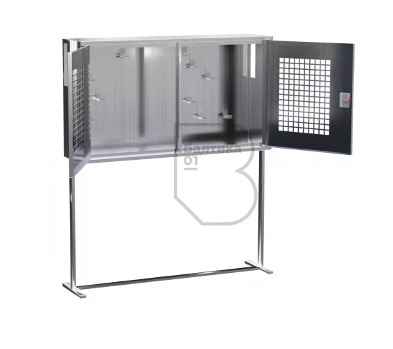 Щит пожарный со стойкой из нержавеющей стали (2 двери сетка)