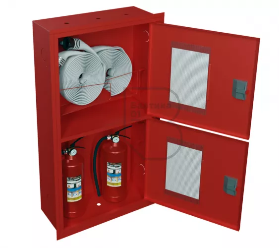 Шкаф пожарный ШПК-320-12 ВОК – предназначен для размещения и хранения двух рукавов пожарных в сборе, двух пожарных вентилей (клапанов) и двух огнетушителей до 10 кг. Шкаф оборудован двумя кассетами рукавными (в верхнем отсеке шкафа размещаются две кассеты).